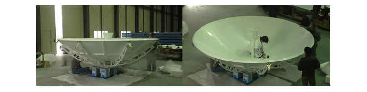 Compared with conventional metallic antenna reflectors, composite antenna reflectors have approximately ¼ weight to reduce the load of positioner as well as long life time with anti-corrosive properties. Thanks to the facility of processing complex shape, composite antenna reflectors have more possibility of fabrication to customer’s specific needs. Our goal is to expand availability of composite in Antenna / Radar business with our capability.